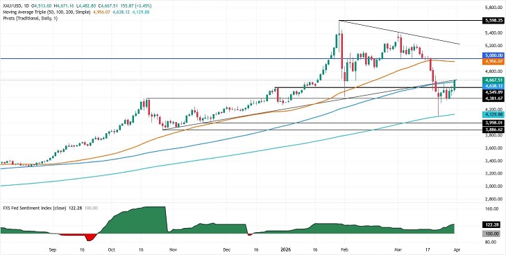 Valencia表示,金价已成功突破位于4617美元/盎司的100日简单移动平均线(SMA)这一关键阻力位。相对强弱指数(RSI)显示,随着该指标逐渐逼近中性水平并呈上行趋势,市场的上行动能正变得愈发积极。