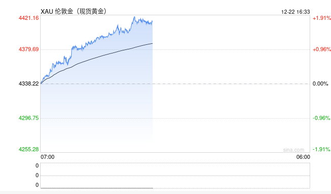 12月21日美国纽约商品交易所黄金期货价格21日再创历史新高。其中,交投最活跃的2026年2月黄金期价盘中突破每盎司4430美元。