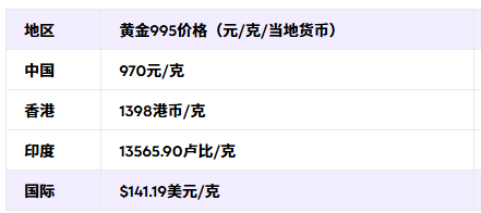 今日黄金995价格为970元/g。