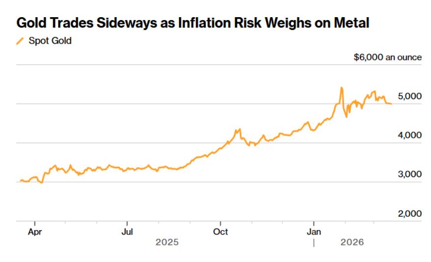 国际黄金价格窄幅震荡,目前交投在5000美元附近